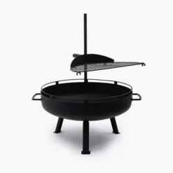 Cowboy Fire Pit Grill System SMALL. Maak kennis met het kleinere zusje van het Cowboy Fire Pit Grill System. Een perfect modulair systeem: Vuurschaal, Grill en BBQ in één. Het verstelbare rooster geeft u de keus: direct of indirecte warmte voor perfecte grill/bak/BBQ condities. Na gebruik makkelijk op te bergen door de demontabele poten. Stevige stalen constructie. Een stang voor bevestiging van grillrooster. Grillrooster in hoogte verstelbaar.Hoogte vuurschaal: 37 cm. Vuurschaal met handgrepen. Diameter schaal: 58 cm. Dikte staal: 2 mm.